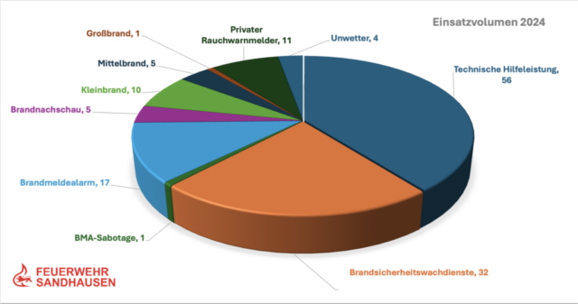 In seinem Jahresbericht gab Kommandant Markus Zielbauer einen Überblick über das Einsatzgeschehen des Jahres 2024. Die Feuerwehr Sandhausen wurde zu insgesamt 142 Einsätzen alarmiert. Diese gliederten sich in Brandeinsätze, technische Hilfeleistungen sowie sonstige Einsätze.