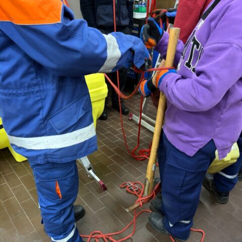 Die Jugendlichen meisterten in zwei Gruppen verschiedene Stationen: Kisten seitwärts stapeln, Feuerwehrgeräte einbinden, eine LEGO-Figur nur per Funkanweisung nachbauen und vieles mehr. Teamgeist, Geschicklichkeit und Kommunikation waren also gefragt.