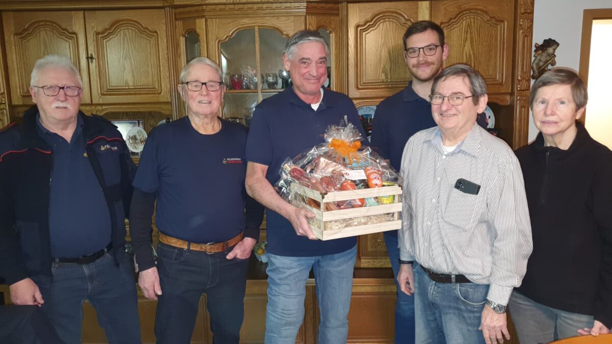 16. Februar 2026Am 09.01.26 feierte unser Ehrenmitglied Hermann Würzer seinen 70. Geburtstag. Aus diesem Grund besuchten neben Kdt. Markus Zielbauer und stv. Kdt. Marc Zinser einige weitere Kameraden den Gratulanten und überreichte ihm einen Geschenkkorb.