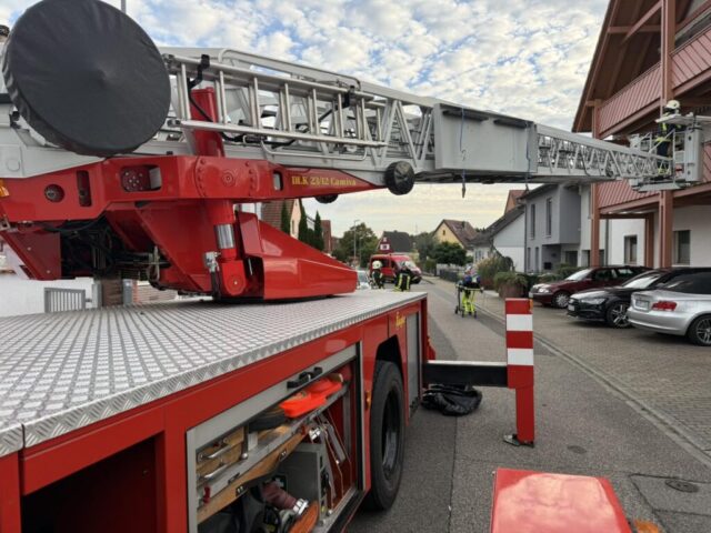 Am Mittwochabend wurde die Feuerwehr Sandhausen zusammen mit der Drehleiter der Feuerwehr Nußloch zu einer Menschenrettung aus dem 1. OG eines Wohnhauses alarmiert. Mittels Drehleiter wurde der Patient schonend aus dem Gebäude gerettet und dem Rettungsdienst übergeben.