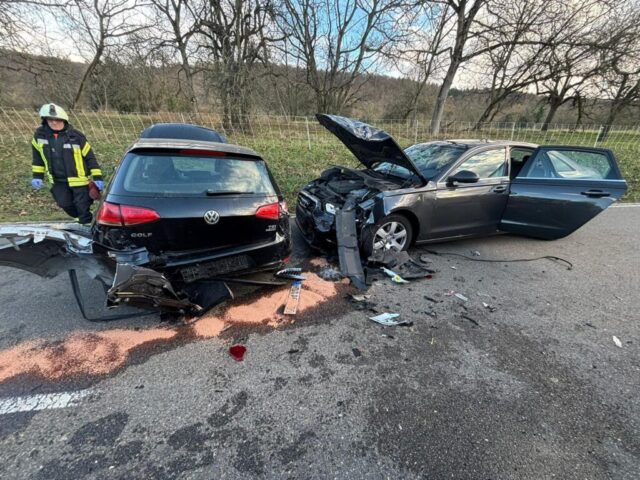 Auf der L 594 zwischen Nußloch und Leimen kam es zu einem Frontalzusammenstoß mit insgesamt drei beteiligten PKW.